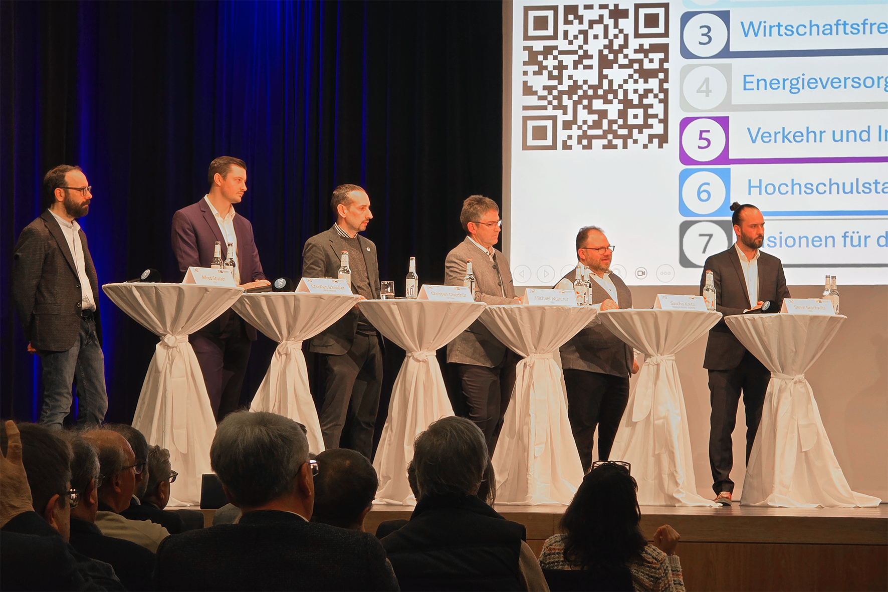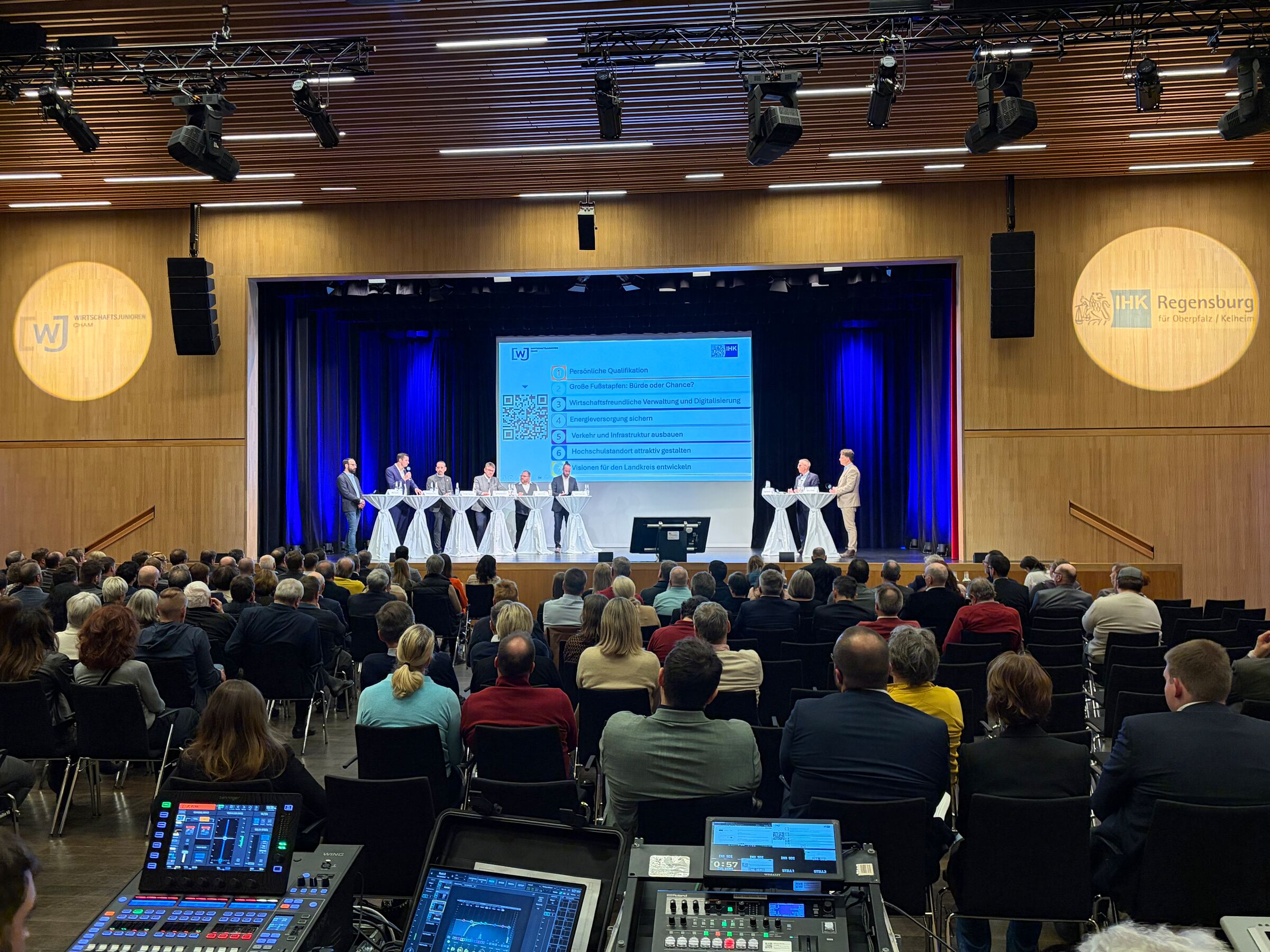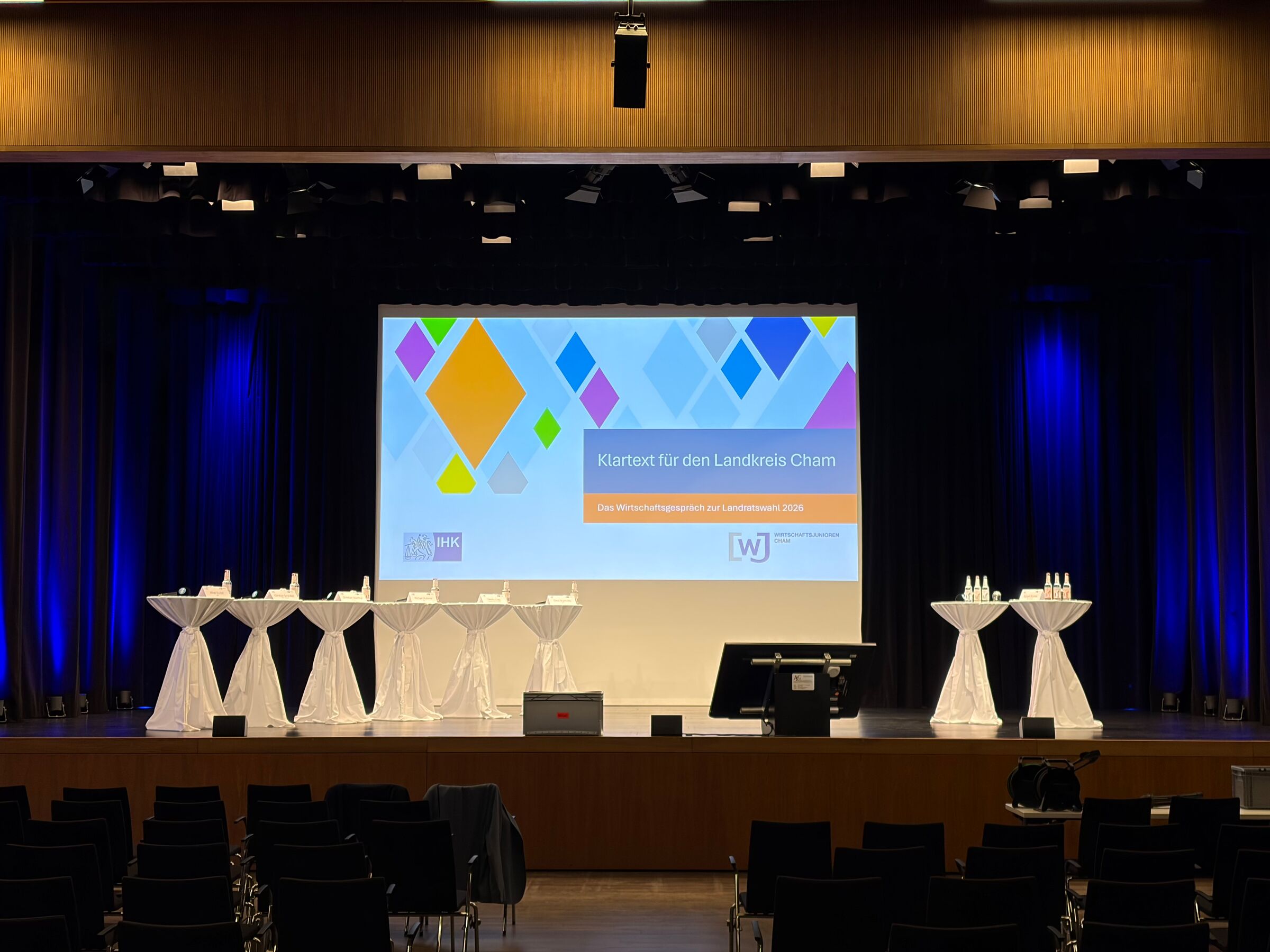 Rund 220 Unternehmerinnen und Unternehmer nutzten die Gelegenheit die sechs Landratskandidaten zu Wirtschaft, Digitalisierung, Tourismus und Zukunftsvisionen für den Landkreis Cham zu befragen.